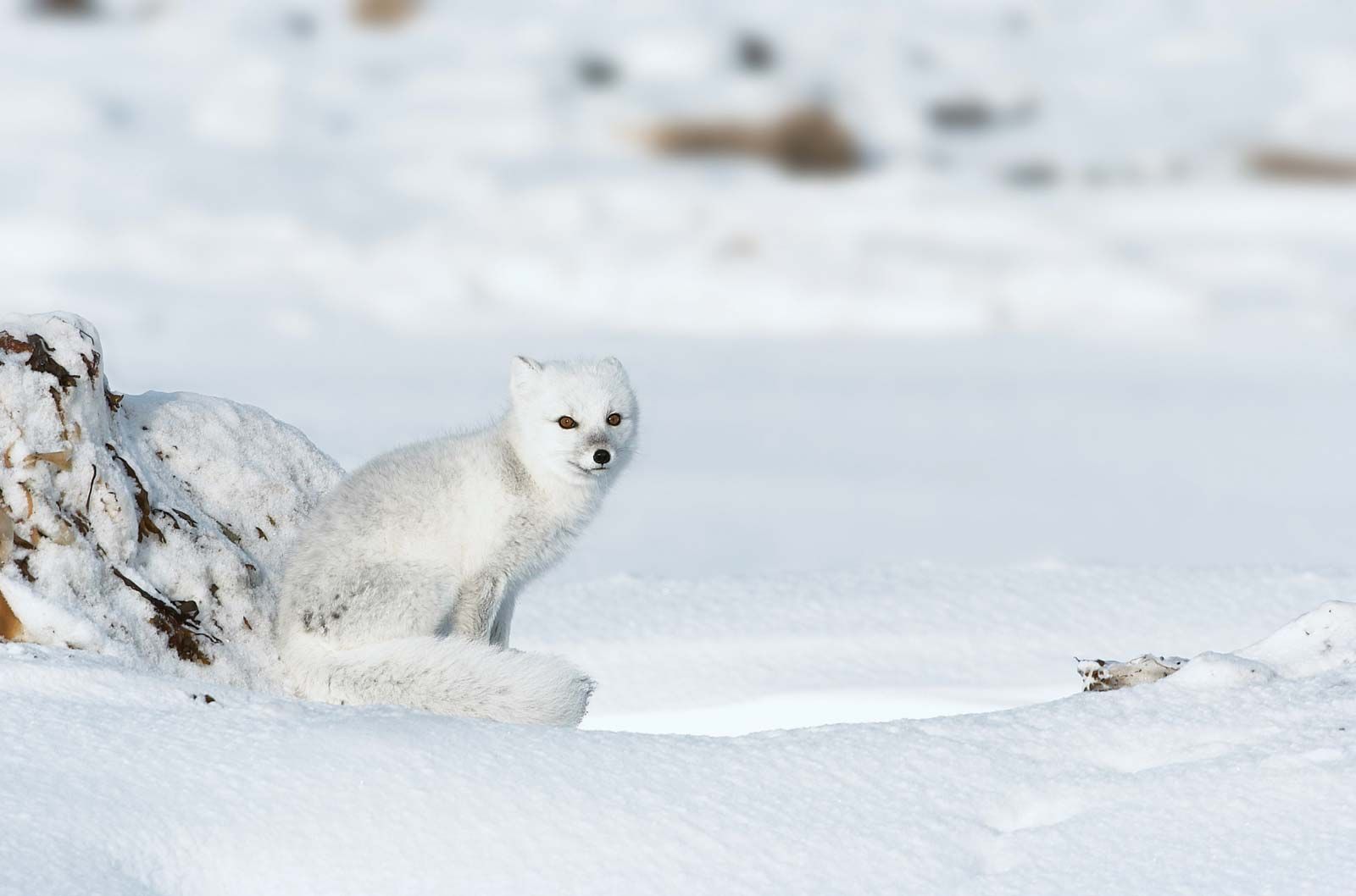 Lemmings in the genus Dicrostonyx, which comprises an indeterminate number of species, turn from brown or gray in the warmer months to white when the snows come. (They belong to a different genus than true lemmings, which remain brown.) Strangely, they spend most of their time burrowing beneath the snow, which would seem to render camouflage unnecessary. They even grow special winter claws—really extensions of the toe pads—for digging through the drifts to create nests and reach the stems of the Arctic willows upon which they feed. Their skins were once used by Eskimo peoples as clothing embellishments.